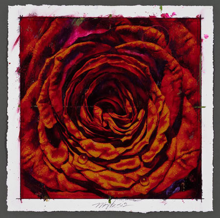 Rose Study XI 2011 | 17x17 oil, enamel, gouache & collage on paper | 662.17.06 |